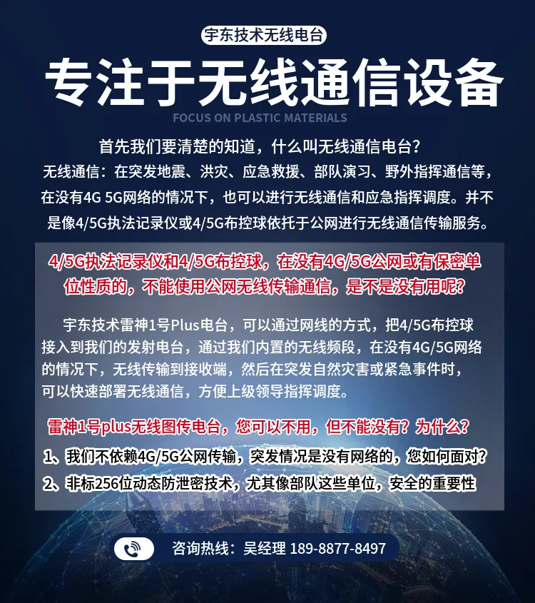 宇東技術(shù)雷神1號(hào)PLUS背負(fù)式高清無(wú)線圖傳電臺(tái),是公司針對(duì)應(yīng)急救援指揮、公安、反恐作戰(zhàn)、消防救援、邊防執(zhí)勤、海警海關(guān)巡檢、部隊(duì)拉練演習(xí)、森林消防等,在突發(fā)重大事件,斷網(wǎng)斷電,通信中斷的情況下,現(xiàn)場(chǎng)工作人員通過宇東雷神1號(hào)PLUS單兵圖傳電臺(tái),把現(xiàn)場(chǎng)采集的數(shù)據(jù)實(shí)時(shí)無(wú)線傳輸?shù)街笓]車/臨時(shí)指揮部大屏幕,讓指揮部領(lǐng)導(dǎo)對(duì)現(xiàn)場(chǎng)情況一目了然,節(jié)省了到達(dá)現(xiàn)場(chǎng)的時(shí)間,可快速做緊急指揮調(diào)度,最大限度的減少突發(fā)事件帶來的各種損失。