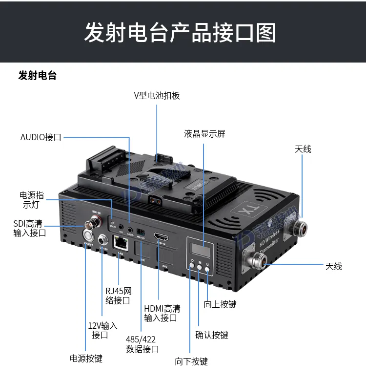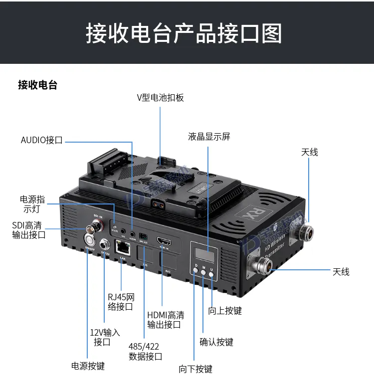 3、發(fā)射和接收電臺(tái)機(jī)身嵌入SONY V型扣,直接卡入專業(yè)電池使用